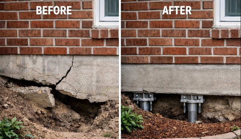 We use advanced stabilization methods such as helical piers, steel piers, and slab pier systems. These methods provide deep anchoring to stable soil or bedrock, ensuring your home is protected against further settlement. Our technicians are trained in industry-best practices and we offer a workmanship warranty on all structural repairs.